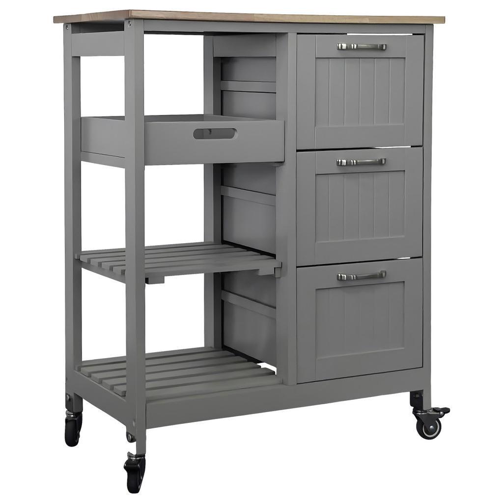 Mid.you Servierwagen, Grau, Metall, Kautschukholz, vollmassiv, 3 Schublade(n) Schubladen, rechteckig, Rollen, 67x84x37 cm, Fsc, einfacher Aufbau, Esszimmer, Barmöbel, Barwagen