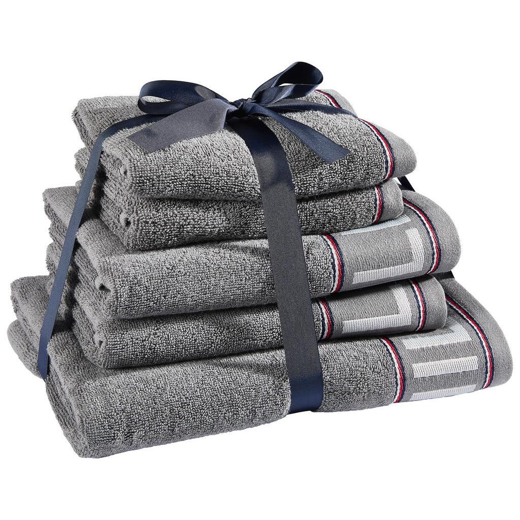 Tommy Hilfiger Frottierset Degree, Grau, Textil, 5-teilig, Uni, Badtextilien, Handtuch-Sets