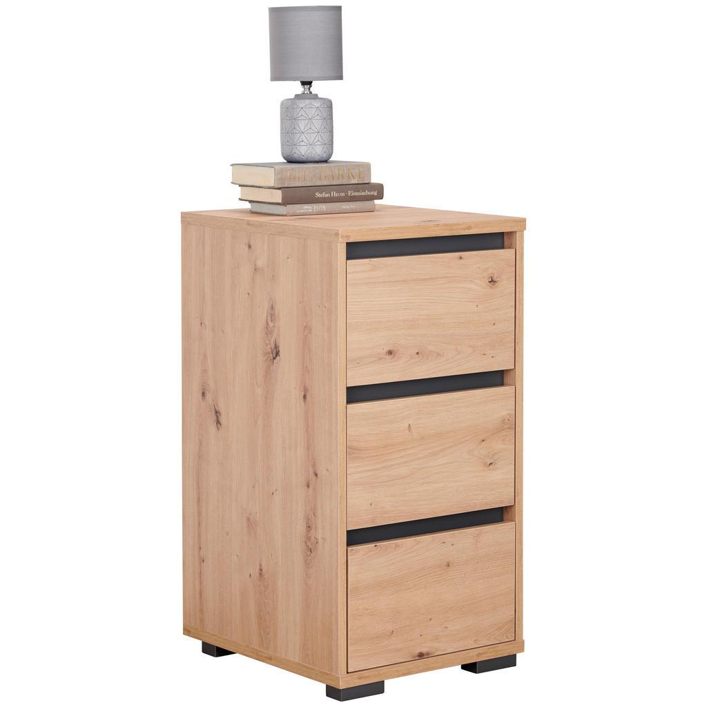 Carryhome Nachtschrank , Anthrazit, Eiche , Holzwerkstoff , 3 Schubladen , 40x79x48 cm , Schlafzimmer, Nachttische
