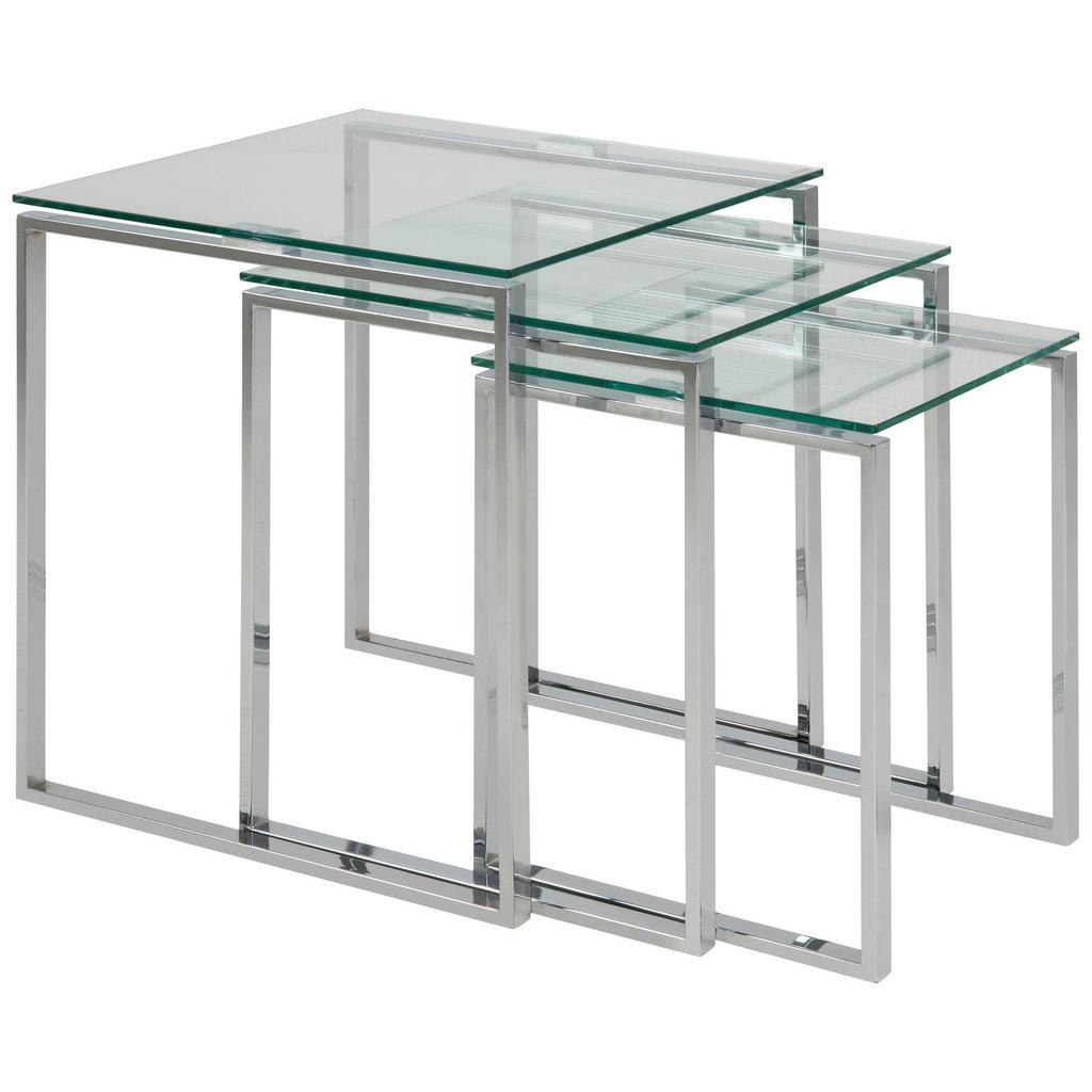 Beistelltischset Katrine, Klar, Chrom, Glas, 3-teilig, quadratisch, eckig, Kufe, 36-50x45-55x36-50 cm, Wohnzimmer, Wohnzimmertische, Satztische