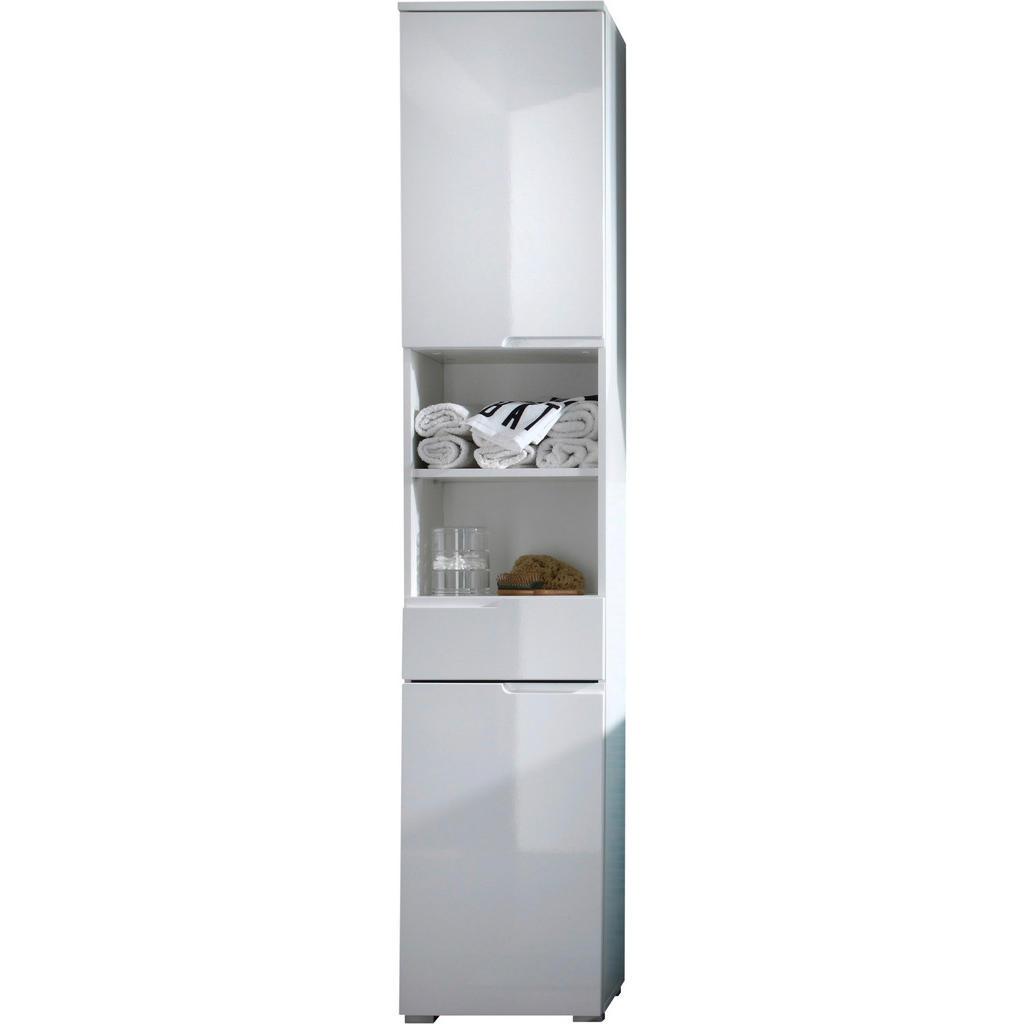 Xora Hochschrank , Weiß , Holzwerkstoff , 3 Fächer , 1 Schubladen , 40x199x32 cm , Made in EU , Badezimmer, Badezimmerschränke, Hochschränke