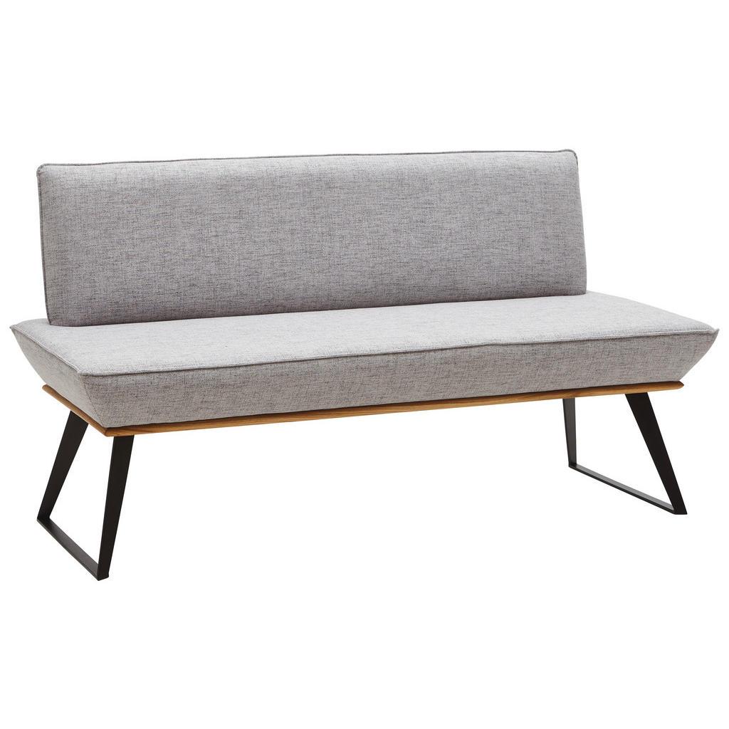 Voleo Sitzbank , Schwarz, Eiche, Hellgrau , Holz, Metall, Textil , Eiche , massiv , Uni , 2-3-Sitzer , 160x87x64 cm , Stoffauswahl, mit Rückenlehne , Esszimmer, Bänke, Sitzbänke