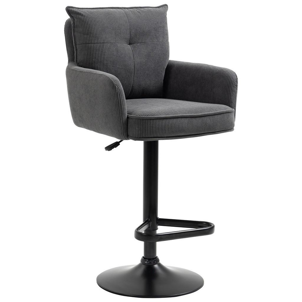 Novel Barhocker , Anthrazit, Schwarz , Metall, Textil , Drehteller, Säule , 54x98-120x58 cm , Handmade in China , Stoffauswahl, Sitzfläche 360° drehbar, inklusive Armlehnen , Esszimmer, Barmöbel, Barhocker