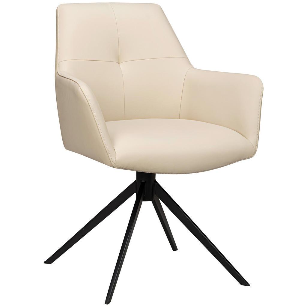 Novel Armlehnstuhl , Schwarz, Beige , Metall, Leder , Echtleder , Rindleder , Drehkreuz , 60x87.5x63.5 cm , Sitzfläche 360° drehbar, inklusive Armlehnen , Esszimmer, Stühle, Esszimmerstühle, Armlehnenstühle