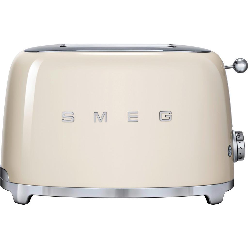 Smeg Toaster 50´s Style , Creme, Chrom , Metall , 31x19.8x19.5 cm , Krümelschublade, Auftaufunktion, Aufwärmfunktion, Schnellstoppfunktion, automatischer Auswurf nach Röstende, automatische Zentrierung der Toastscheibe, Bagel-Funktion , Küchengeräte,...
